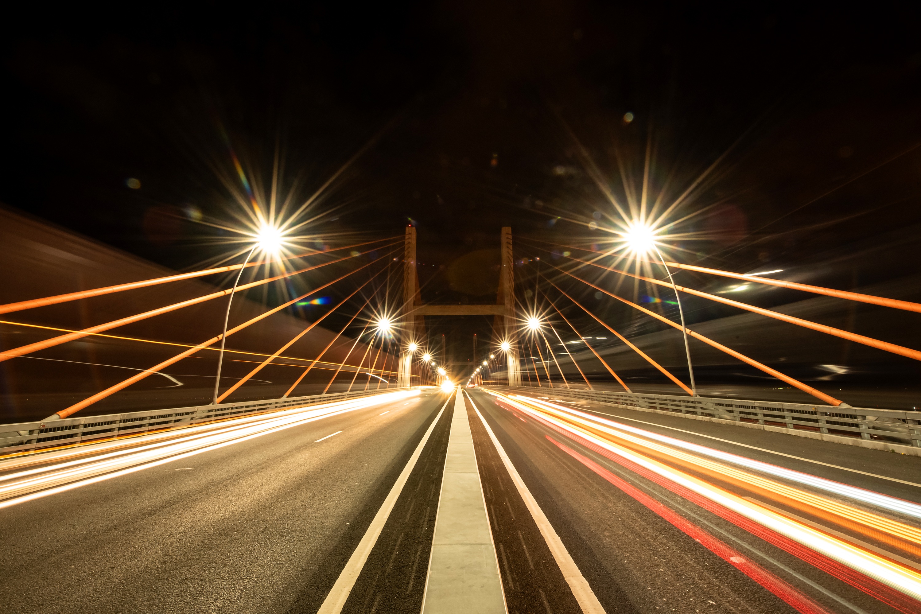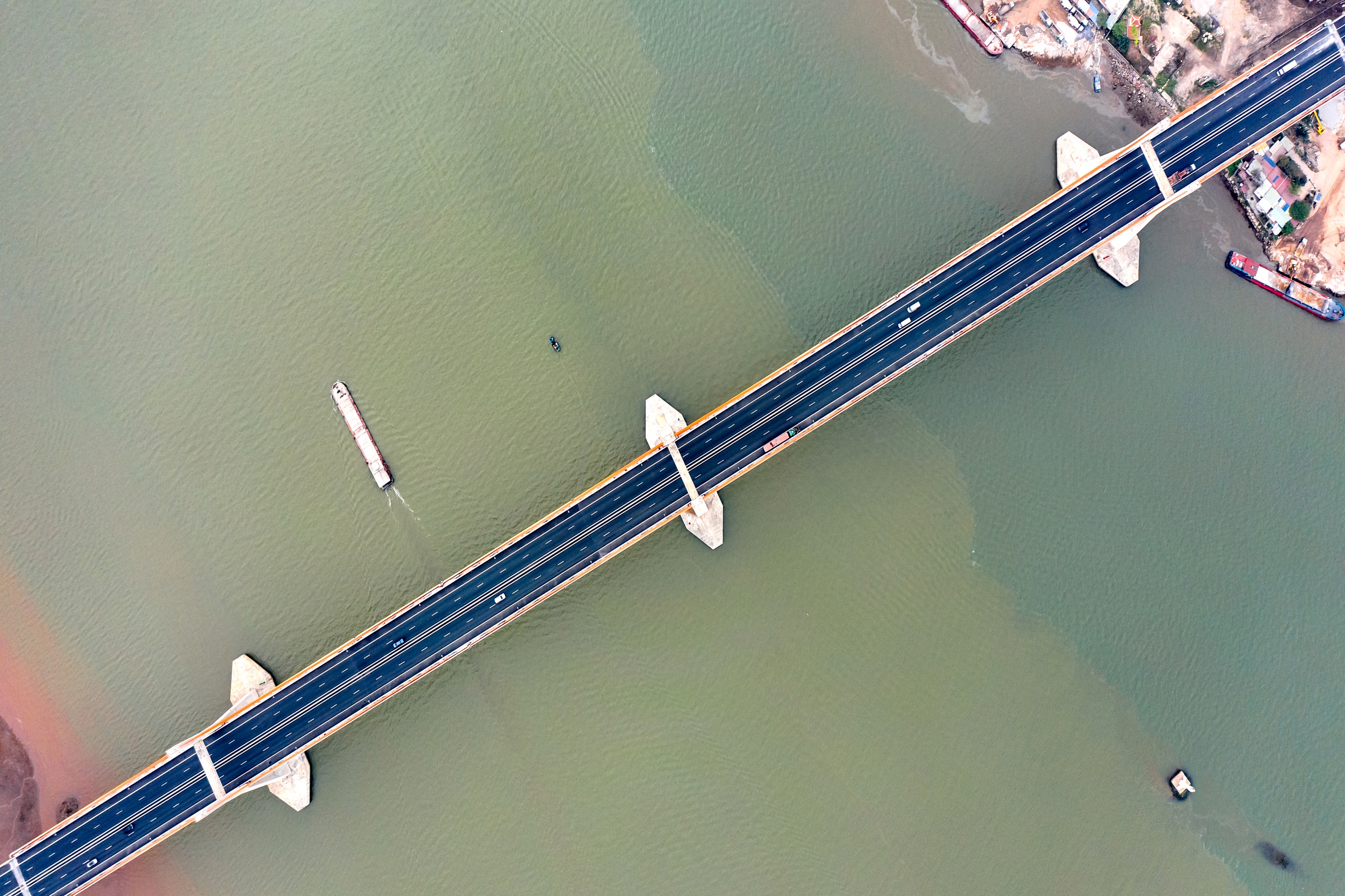 • - Cầu chính dài 3,054km, rộng 25m, được thiết kế 4 làn xe, vận tốc tối đa 100km/h